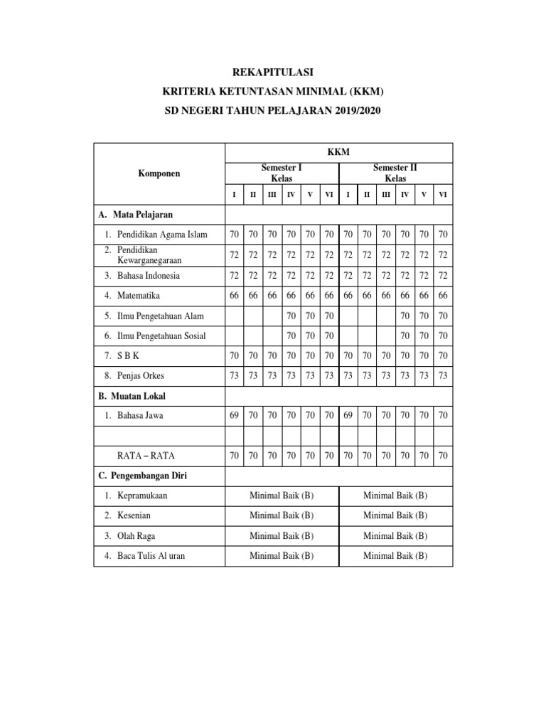 Satuan pendidikan menetapkan kkm yang disusun oleh pendidik melalui rapat dewan guru. Contoh kkm kelas 4 sd mi kurikulum 2013 revisi 2019 2020 ini dia kkm promes prota sd kurikulum 2013 revisi terbaru tahun 2018 seperti yang sudah diketahui sebelumnya prota prosem dan kkm merupakan perangkat pembelajaran yang harus disusun dan dipersiapkan sebelum kegiatan pembelajaran dilaksanakan sama halnya dengan rpp. Jul 08, 2021 · kkm kelas 1 semester 1 dan kkm kelas 1 semester 2 merupakan 1 dari sekian banyak perangkat pembelajaran yang telah kami. Oleh admin kamis, agustus 30, 2018. Pada kali ini kita ingin membagikan mengenai kkm bahasa jawa sd kurikulum 2013 excel yang pastinya banyak sekali yang membutuhkan khususnya guru yang mengajar bahasa jawa di sekolah dasar.
