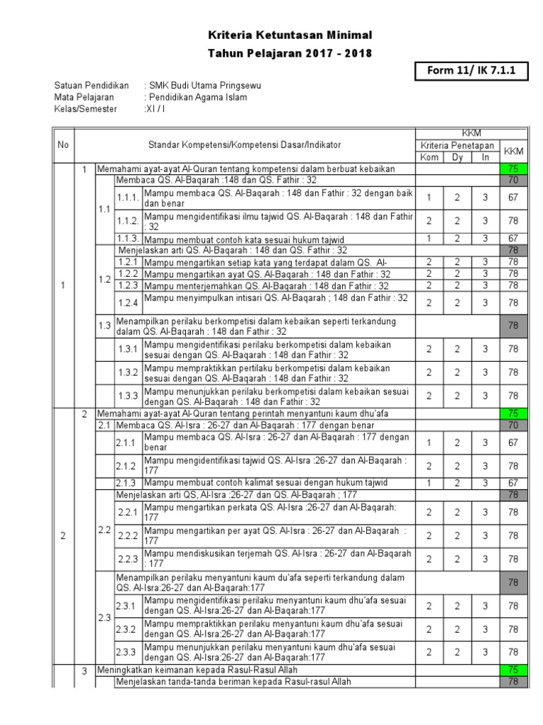 Nilai kkm / kbm pai & bp sd kelas 1 2 3 4 5 6 kurkulum 2013 dijadikan sebagai tolok ukur tingkat pencapaian kompetensi sesuai dengan yang harus didapatkan oleh setiap. Kumpulan perangkat pembelajaran pai kelas 1 sd 6 semester 1 dan 2 k13 lengkap. Administrasi merupakan penunjang kesiapan dalam proses belajara mengajar. Kkm, prota, dan promes pai kelas 1,2,3,4,5,6 sd/mi kurikulum 2013. Untuk itulah disini kami menyediakan kkm kurikulum 2013 revisi 2013 sebagai kelengakapan administrasi rpp. Menunjukkan beberapa contoh hukum bacaan waqaf dalam qs. Berkas yang satu ini tidak kalah pentingnya, karena masih merupakan bagian dari perangkat pembelajaran yang harus dimiliki oleh setiap. Inilah aplikasi kkm k13 sd untuk kelas 1, 2, 3, 4, 5, 6 format excel (xls/xlsx) sebagai alat bantu otomatis menghitung nilai kriteria ketuntasan minimal. Inilah perangkat pembelajaran pai k13 sd revisi 2019 untuk kelas 1, 2, 3, 4, 5, 6 yang terdiri dari rpp, kkm, prota, promes, silabus sebagai alat mengajar. Kkm pai (pendidikan agama islam dan budi pekerti) sd kurikulum 2013 kelas 1, 2 ,3 ,4 ,5 , dan 6 dalam bentuk aplikasi dalam fomat excel. Kkm adalah kriteria terendah atau minimum untuk menyatakan siswa mencapai ketuntasan. Berikut ini administrasi guru pai sd kurikulum 2013 revisi 2019 untuk kelas 1,2 ,3 ,4 ,5, 6 sebagai perangkat pembelajaran pendidikan agama islam. Contoh soal pas qurdis kelas 3 sd mi semester 2 kurikulum 2013.