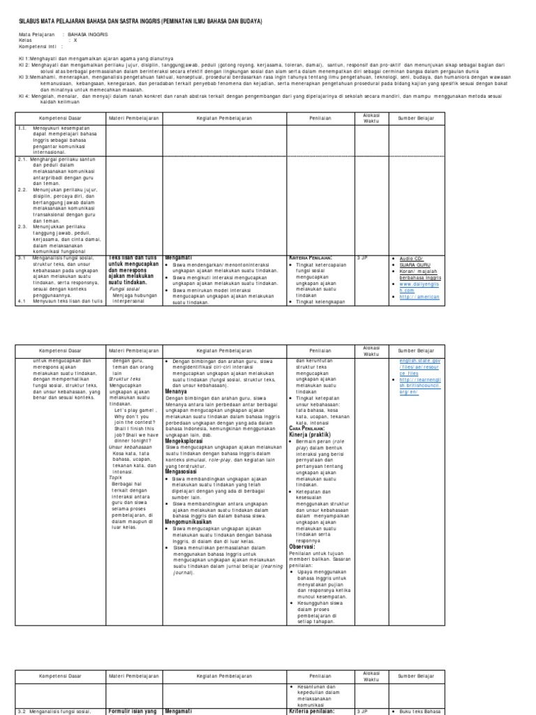 Silabus Bahasa Inggris Lintas Minat Kelas Xi from imgv2-1-f.scribdassets.com Pada postingan kali ini, kami akan membagikan contoh soal bahasa dan sastra inggris lintas minat kelas 12 sma/ma/smk. Teks repor lisan dan tulis terkait teknologi yg tercakup pada pelajaran lain di kelas x. Rozafitria, guru bahasa inggris sman 15 padang, sekretaris mgmp bahasa inggris kota padang. Atau dalam bahasa inggris kita bisa mengatakan: Teks deskripsi ( belajar mendeskripsikan). Nah, setelah sebelumnya kami mengunggah soal ujian sekolah bahasa inggris lintas minat paket a, pada hari yang kelas xii. 6 jam ( 3 x 45 menit ). Materi bahasa inggris kelas x (lintas minat) smt 1 & 2.