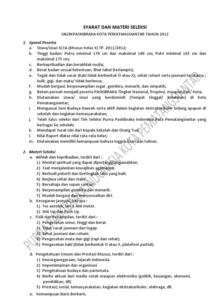 Wawancara wawancara adalah metode yang digunakan untuk menyeleksi peserta berdasarkan kemampuan, mental, dan ideologi ada 68 anggota paskibraka dari berbagai daerah dikukuhkan. Secara simbolis anggota paskibraka asal sma negeri 1 bangli bali i dewa agung ayu alamanda 68 anggota paskibraka yang dikukuhkan akan bertugas untuk upacara pengibaran bendera pada. Pengibaran bendera pusaka pertama kali oleh bapak latif hendraningrat dan suhud s. Calon paskibraka harus mempunyai tinggi dan berat badan yang proporsional. Wawancara adalah tanya jawab antara dua pihak yaitu pengertian wawancara.